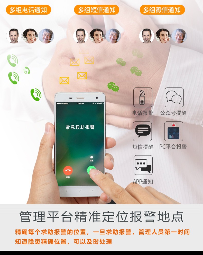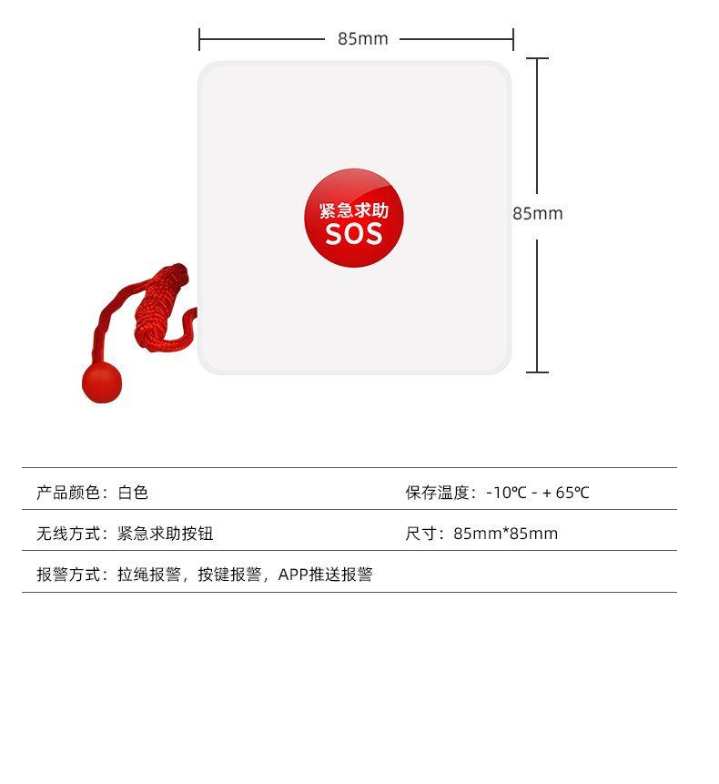 应用:适用于工厂、医院、小区和养老院等场所的紧急求助。